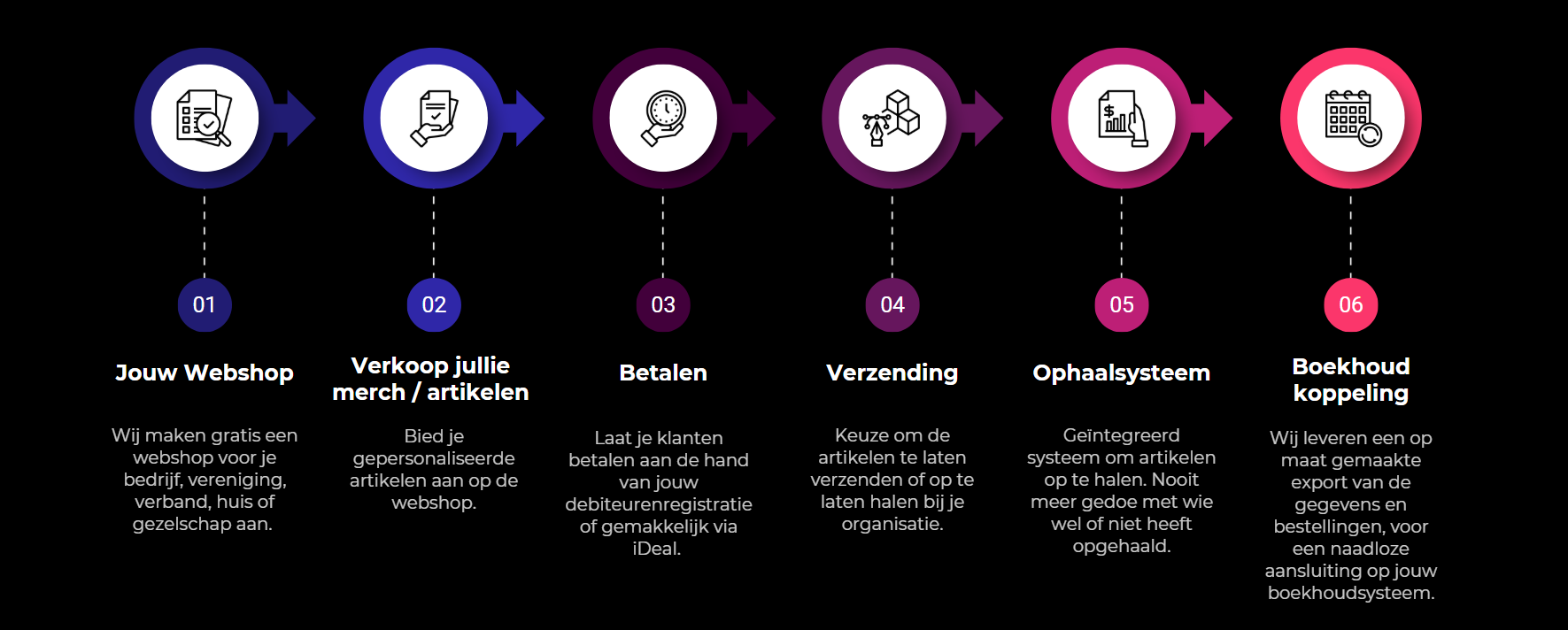 Je krijgt een eigen webshop in jouw eigen huisstijl, waarop gemakkelijk besteld kan worden.